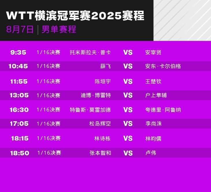 收藏!央视7-11日直播横滨冠军赛,赛程:王楚钦避免爆冷,林诗栋硬仗